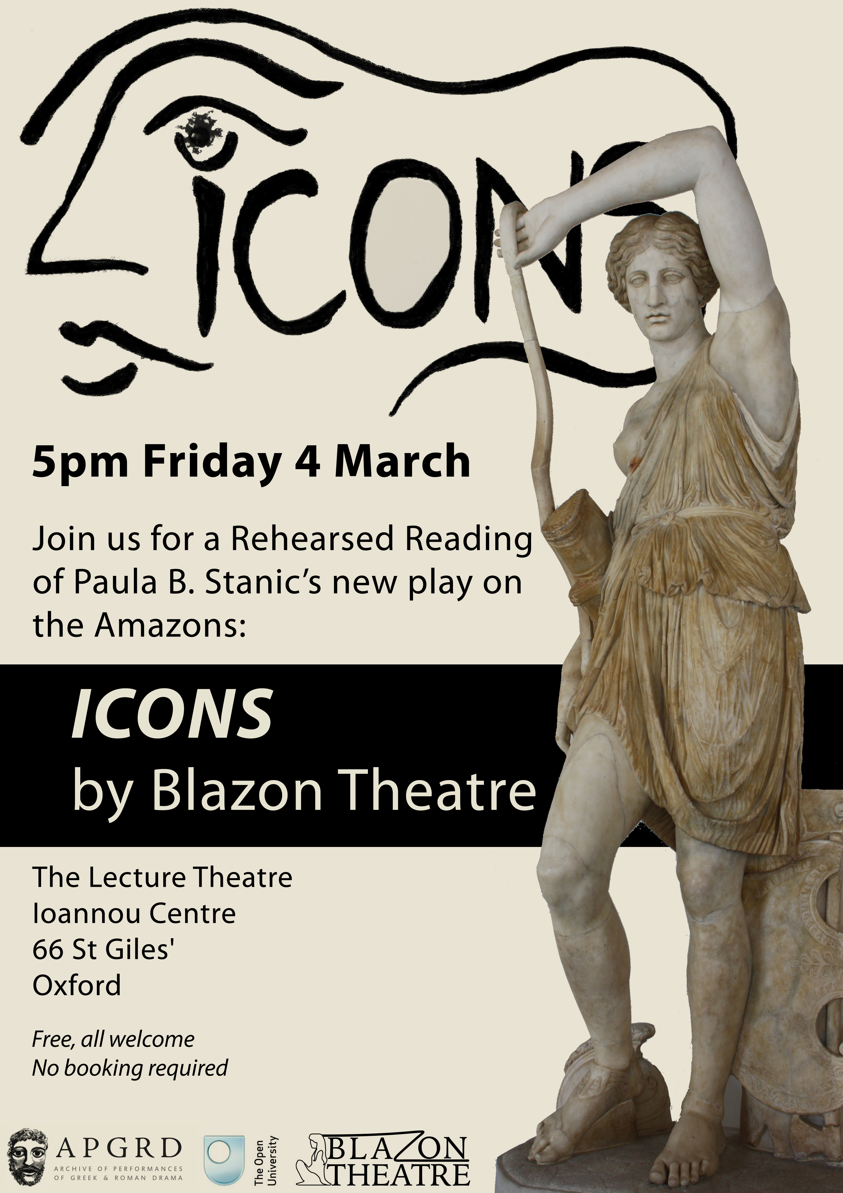 Join us for a rehearsed reading by Blazon Theatre company, of Paula B. Stanic's new play about the Amazons, Icons. Free, all welcome, no booking required.