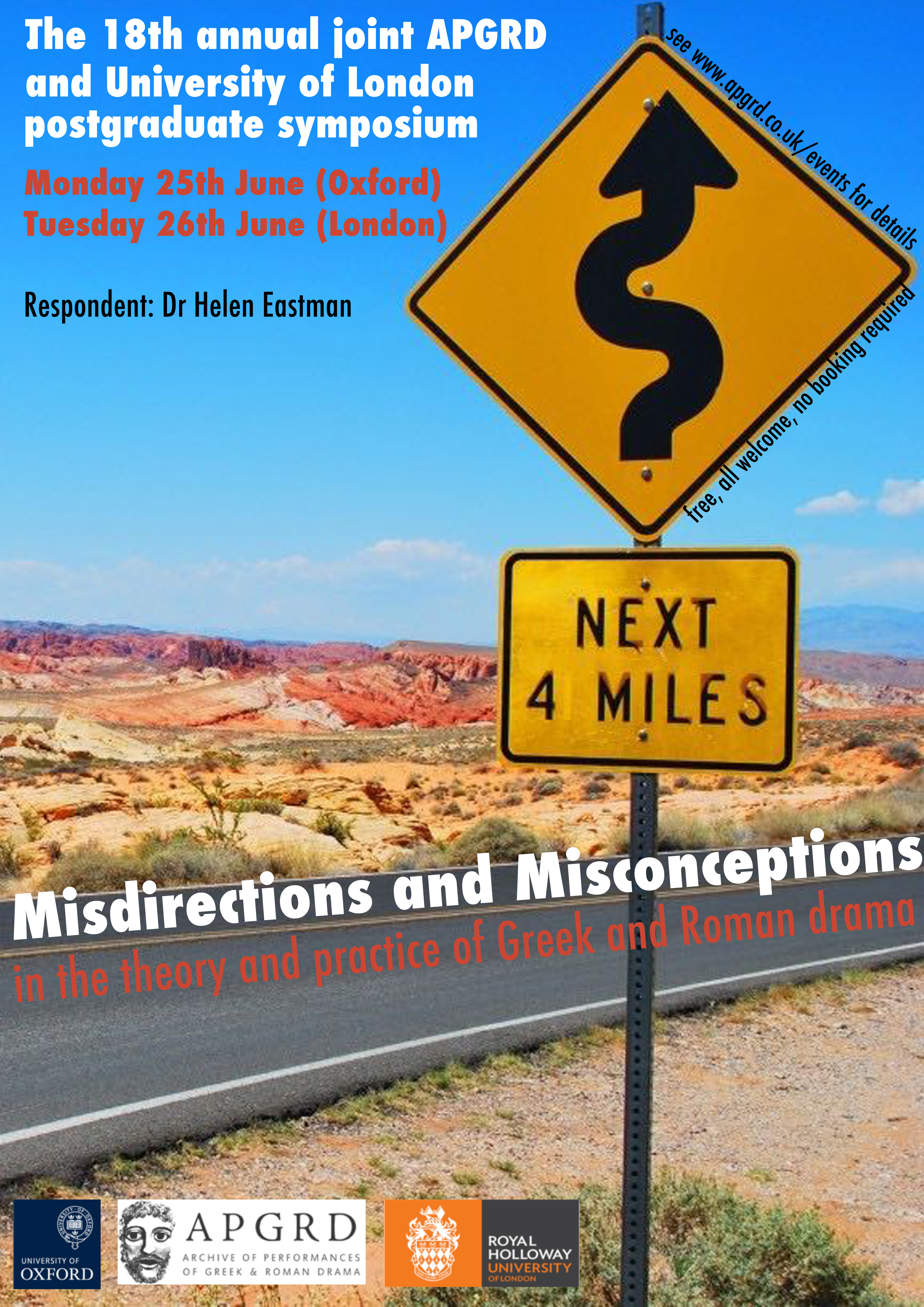The 18th Annual APGRD / Royal Holloway, University of London Joint Postgraduate Symposium on the Performance of Ancient Drama will take place on Monday 25 June (at the Ioannou Centre, Oxford) and Tuesday 26 June (at Royal Holloway, Egham). This year’s theme will be: ‘Misdirections and Misconceptions in the Theory and Practice of Greek and Roman Drama’.